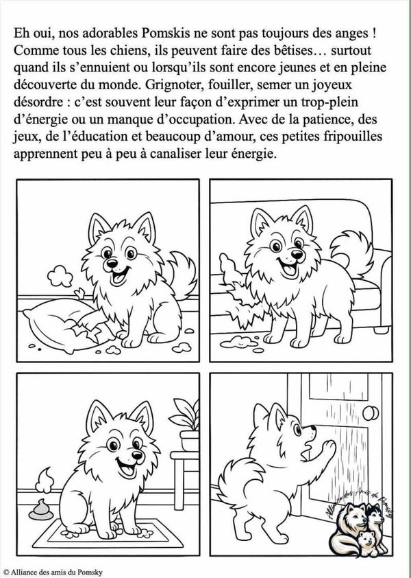 "Besoin d’occuper vos enfants loin des écrans ? 🎨🐾 Offrez-leur une activité qui allie rires et créativité 🖍️🐶 avec le livret de coloriage Les bêtises de ton Pomsky : fun, éducatif et trop mignon !"